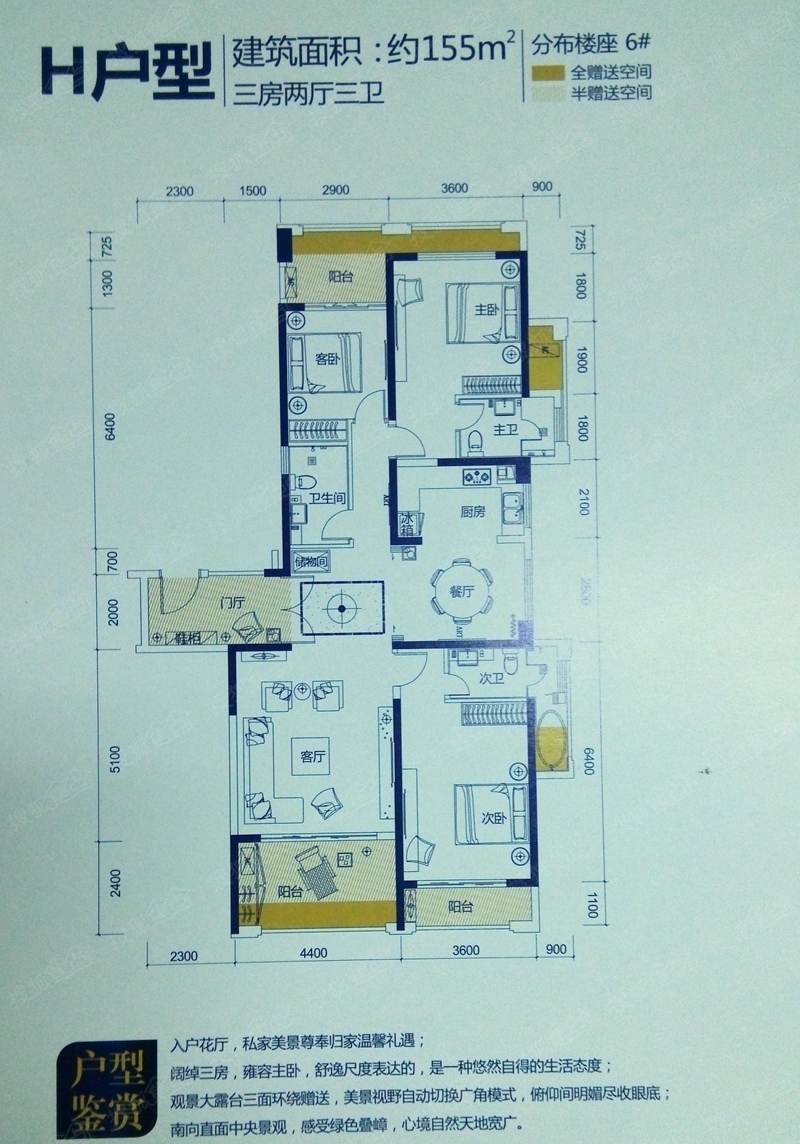 君和君泰一期项目有8栋24-32层高层住宅,东、南侧为1.6万平米的商业区,并配有5000平米的购物超市,全面满足小区生活所需。一期户型涵盖45-49㎡一房一厅产品、61-77㎡两房一厅产品、84-119㎡两房两厅产品105-155三房两厅产品,户型方正实用、通风采光好、入户花园、超大阳台提高综合实用率,最大范围的分配景观资源,打造出三亚市场户型均好、性价比最佳的项目。